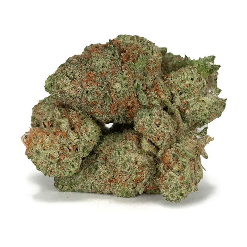 | Appearance | Dense, frosty nugs with mint green leaves and purple hues, thick layer of white trichomes and bright orange pistils |